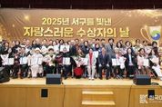 [ 한국미디어뉴스 이원영 기자 ] 대전 서구는 17일 구청 구봉산홀에서 한 해 동안 지역사회 각 분야에서 헌신하며 서구 발전에 기여한 구민들의 공로를 기리는 ‘2025년 서구를 빛낸 자랑스러운 수상자의 날’ 행사를 개최했다. 이번 행사는 수상자와 가족, 내빈 등 400여 명이 참석한 가운데 원활한 진행을 위해 오전과 오후 두 차례로 나뉘어 진행됐다. 오전 1부 행사에서는 87명의 구민이 표창을 받았다. 6·25전쟁 무공에 대한 화랑무공훈장 전수를 비롯해 △공중위생 무료 봉사 △전통시장 활성화 △청소년 범죄 예방 △치매 관리 사업 등 주민의 안전과 건강 증진을 위해 힘써온 유공자들이 수상의 영예를 안았다. 이어 열린 오후 2부 행사에서는 126명의 구민이 수상했다. 지방자치 발전 유공 국무총리상을 비롯해 △구정 발전 △도시재생 △탄소중립 실천 △산불 방지 △지역자율방재단 활동 정책 실천 및 재난 안전 분야에서 활약한 구민들이 포함됐다. 구 관계자는 “수상자 한 분 한 분의 묵묵한 헌신과 노력이 모여 오늘의 서구를 만들었다”며 “앞으로도 구민과 함께 지혜를 모아 구정 발전을 위해 노력하겠