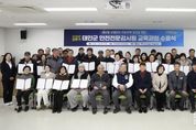 [ 한국미디어뉴스 이원영 기자 ] 태안군이 지역 산업현장의 안전사고 예방을 전담할 ‘태안형 안전전문감시원’ 양성에 성공하며 현장 맞춤형 일자리 창출에 나선다. 군은 지난 22일 태안문화원에서 가세로 군수와 태안발전본부 관계자 등이 참여한 가운데 ‘2026년 상반기 안전전문감시원 양성과정 수료식’을 열고 교육과정을 마친 40명에게 수료증을 전수했다고 밝혔다. 이번 사업은 중대재해처벌법 시행 이후 급증한 산업현장 내 전문 인력 수요에 대응하기 위해 마련됐다. 지역 주민을 전문가로 양성해 실질적인 채용까지 연결하는 실무 중심의 일자리 사업으로 큰 주목을 받고 있다. 군은 한국서부발전 태안발전본부와 업무협약을 맺고 사업비를 절반씩 분담해 추진 중이다. 지난해까지 123명이 수료하고 100여 명이 취업하는 성과를 거뒀으며, 이번 상반기에도 40명의 교육생이 열정적인 노력 끝에 수료증을 받게 됐다. 보령여성인력개발센터가 주관한 이번 교육은 4일간 총 24시간의 강도 높은 훈련으로 진행됐다. 신호수, 유도원, 화재 및 밀폐감시원 등 현장에서 즉시 투입 가능한 5개 전문 과목을 다뤘다. 이에 더해,