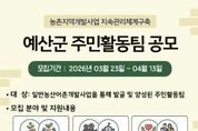 [ 한국미디어뉴스 이원영 기자 ] 예산군행복마을지원센터는 주민의 지역개발사업 참여를 확대하고 주민활동팀의 자립체계 구축을 지원하기 위해 ‘농촌지역개발사업 지속관리체계 구축’ 주민활동팀을 4월 13일까지 모집한다고 밝혔다. 이번 공모는 단순한 활동비 지원을 넘어 지역 현안을 스스로 해결하고 지속 가능한 활동 기반 마련에 목적이 있으며, 공모 대상은 일반농산어촌개발사업을 통해 발굴·양성된 조직으로 관내 비영리민간단체와 법인, 협동조합, 예비사회적기업 등이다. 모집 유형은 △지역자원 상품화와 소득 증대를 위한 ‘로컬 비즈니스’ △지역 정체성 확립과 관광자원 발굴을 위한 ‘마을 기록 아카이빙’ △사회 안전망 구축과 공동체 회복을 위한 ‘공동체 공익활동’ 등 3개 분야다. 각 분야별 4팀씩 총 12팀을 선정하며, 심사 결과에 따라 팀당 최대 1000만 원 이내로 차등 지원한다. 신청을 희망하는 단체는 4월 13일까지 센터 누리집 또는 방문 접수하면 되며, 자세한 사항은 행복마을지원센터로 문의하면 된다. 오윤석 센터장은 “이번 사업은 주민들이 지역개발에 주체적으로 참여하고 지속 가능한 활동 기반