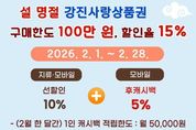 [ 한국미디어뉴스 이종철 기자 ] 강진군이 설 명절을 맞아 2월 한 달간 강진사랑상품권 구매한도와 할인율을 상향 조정한다. 지원 기간은 오는 2월 1일부터 2월 28일까지이며, 대상은 모바일(착) 강진사랑상품권이다. 이번 상향 조정은 설 명절 기간 소비 진작과 지역경제를 활성화하기 위해 조정된 것으로 모바일 (착) 상품권의 구매한도를 기존 70만 원에서 100만 원으로 상향하고, 할인율은 기존 선할인 10%에서 후캐시백 5%를 추가 지급하는 총 15%로 상향했다. 다만, 지류 상품권은 부정유통 방지를 위해 구매한도 70만 원, 선할인 10%를 기존대로 유지한다. 이번 강진사랑상품권 특별 상향 운영은 2025년 지역사랑상품권 발행 우수 지자체로 선정되어 특별교부세로 받은 2억 원으로 추진된다. 이는 강진군이 지역사랑상품권의 안정적인 발행과 건전한 유통 관리, 국비 연계 집행을 적극 추진해 온 성과로, 지역경제 활성화 정책의 우수성을 대외적으로 인정받은 결과다. 강진군은 7년 연속 강진사랑상품권 할인율을 연중 10%로 유지하며 지역경제 활성화에 앞장서 왔으며, 2026년에도