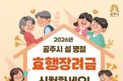 [ 한국미디어뉴스 이원영 기자 ] 공주시는 지역사회 효 문화 확산과 효행 문화 발전을 위해 설 명절을 맞아 ‘효행장려금’을 지급한다고 22일 밝혔다. 지급 대상은 만 75세 이상(1951년 12월 31일 이전 출생자 포함)의 직계존속과 직계비속을 포함해 3대 이상 가정을 이루고 부양하는 세대주이다. 다만, 효도 대상자가 세대주인 경우에는 부양자가 신청 대상이 된다. 또한 3대가 모두 신청일 현재 1년 이상 공주시에 주소를 두고 실제로 거주해야 한다. 지원 금액은 20만 원이며, 설 명절 전 신청자가 선택한 지급 방식에 따라 금융 계좌 또는 공주페이로 지급된다. 신청 기간은 1월 26일부터 2월 6일까지 2주간이며, 주소지 관할 읍면동 행정복지센터에 신분증을 지참해 신청하면 된다. 단, 지난 추석 명절에 효행장려금을 받은 대상자는 지급 조건과 지급 방식이 변동되지 않는 한 다시 신청할 필요가 없으며, 변동 사항이 있을 경우 신청 기간 내 재신청해야 한다. 최원철 시장은 “효의 고장 공주시에 걸맞게 효행 문화를 확산하기 위해 효행장려금 지원 등 다양한 사업을 추진