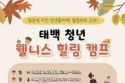 [ 한국미디어뉴스 이원영 기자 ] 태백시는 태백 청년창창센터에서 지역 청년들의 심리적 회복과 건강한 삶의 균형을 지원하기 위해 ‘청년 웰니스 힐링 캠프’ 참가자를 모집한다고 밝혔다. 이번 캠프는 11월 22일 오후 2시부터 5시 20분까지 태백 청년창창센터(태백시 계산1길 15)에서 진행되며, 태백시에 주소를 두거나 생활근거지가 있는 18세 이상 49세 이하 청년 20명 내외를 대상으로 한다. 일상에 지친 청년들을 위하여 △ 사상체질 테스트를 통한 웰니스 한방 체험 △ 색채 심리 검사에 따른 맞춤형 웰니스 컨설팅 △ 개인 맞춤형 아로마 오일 처방 등 다양한 프로그램이 준비되어 있으며, 청년들은 본인의 취향에 맞춰 선택적으로 프로그램 체험이 가능하다. 참가 신청은 네이버폼 또는 포스터의 QR코드를 통한 온라인으로 접수가 가능하며 참가자는 선착순 20명 내외로 선정될 예정으로, 자세한 사항은 태백시청 홈페이지 소통참여 ' 시민공지신청 ' 일반공지신청 탭에서 확인할 수 있다. 경제진흥원 관계자는 “청년의 역량강화와 사회참여 촉진 등 다양한 청년 활동 지원을 위해 마련된 청년센터가 올해 10월 강원특별자