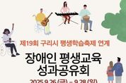 [ 한국미디어뉴스 김서안 기자 ] 구리시는 장애인 평생학습 도시 지정 3주년을 맞아, 장애인의 학습 성과를 공유하고 시민을 대상으로 장애 인식 개선을 위한 공감 프로그램을 제공하기 위해 오는 9월 26일(금)부터 28일(일)까지 구리한강시민공원에서'장애인 평생교육 성과공유회'를 개최한다고 밝혔다. 이번 행사는 '제19회 구리시 평생학습 축제'와 연계해 진행된다. 성과공유회에서는 장애인과 평생학습 관계자들이 한 해 동안 갈고닦은 학습 결과물을 시민들과 나누며 화합의 장을 마련한다. 구리시 관내 6개 장애인 기관·단체가 참여해 ▲발달장애인 미술 작품 전시 ▲슐런 체험(네덜란드 전통 보드게임, 나무 원판을 미끄러뜨려 점수를 내는 놀이) 및 점자 홍보 ▲까롬 경기(인도 전통 보드게임, 손가락으로 작은 원판을 튕겨 포켓에 넣는 놀이) 체험 ▲장애 인식 개선 캠페인 등을 운영할 예정이다. 아울러, 장애인 평생학습 도시 지정 3주년을 기념하고 장애인 인식 개선을 위해 발달장애인으로 구성된 관악밴드 '드림위드 앙상블'팀이 무대에 올라 아름다운 하모니를 선사한다. 구리시는 장애인의 평생학습 참여기회를 넓히고, 지역 기관과의