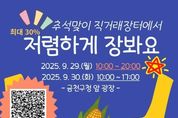 [ 한국미디어뉴스 이보영 기자 ] 금천구는 오는 29일과 30일 금천구청 광장에서 ‘2025년 추석맞이 농·축·수·특산물 직거래장터’를 연다고 밝혔다. 이번 직거래장터를 통해 주민들에게는 우수한 농·축·수·특산물을 시중보다 저렴하게 구매할 수 있는 기회를, 생산 농가에는 안정적인 판로를 제공할 것이라고 구는 기대했다. 도·농 상생 협력 실현을 꾀한다. 이에 따라 금천구 친선도시인 △경남 남해군 △전남 고흥군 △강원 횡성군 △충남 청양군을 비롯해, 동주민센터 도농교류지인 △충북 충주시 △충남 공주시 △충남 서산시 △전남 곡성군 △인천 옹진군 등 전국 13개 지차체 농가가 이번 직거래장터에서 농‧축‧수‧특산물을 판매한다. 또한 △충남 홍성군 △강원 삼척시 △전남 영암군 △서울 관악구 지역농협도 함께한다. 이들은 한우, 한돈, 수산물(젓갈·생선), 과일(사과, 샤인머스켓 등), 각종 나물(도라지, 고사리, 취나물 등), 표고버섯, 고춧가루, 오란다 등 180여 가지 다양한 농·축·수·특산물을 시중가 대비 최대 30% 할인된 가격으로 선보인다. 판매 품목은 행사 홍보물에 포함된 QR코드를 통