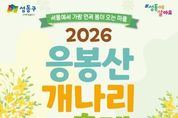 [ 한국미디어뉴스 이원영 기자 ] 서울 성동구는 오는 3월 27일부터 28일까지 이틀간 봄의 기운을 가득 품은 응봉산에서 ‘2026년 응봉산 개나리 축제’를 개최한다. 응봉산은 한강과 서울숲을 비롯한 서울 동부권을 한눈에 내려다볼 수 있는 도심 속 대표 일출 명소이자 조망명소로 손꼽힌다. 매년 봄이면 산 전체가 개나리꽃으로 가득 차 서울에서 가장 먼저 봄소식을 전하는 곳이다. 이에 구는 개나리 개화 시기에 맞춰 매년 주민 모두가 함께 즐기는 ‘응봉산 개나리 축제’를 개최하고 있다. 올해 축제에서는 ▲ 문화 공연 ▲ 가족 백일장 및 그림그리기 대회 ▲ 체험 프로그램 및 개나리 포토존 등 다채로운 행사들이 펼쳐진다. 첫날인 27일에는 금관악기로 구성된 브라스밴드의 신나는 공연을 시작으로 개막식이 열리며, 인생네컷, 페이스페인팅 등 체험프로그램과 다양한 포토존, 개나리 아치 등 조형물이 설치된다. 이어 둘째 날인 28일에는 소년소녀합창단의 멋진 합창 공연에 이어 300여 명의 어린이와 가족들이 참여하는 ‘백일장 및 그림그리기 대회’가 열린다. 구는 3월 25일까지 구청 누리집(홈페이지)을