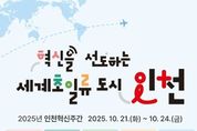 [ 한국미디어뉴스 이원영 기자 ] 인천광역시는 혁신 행정의 성과를 확산하고 공직자의 혁신역량을 강화하기 위해 오는 10월 21일부터 24일까지 ‘2025 인천 혁신주간’을 개최한다고 밝혔다. 이번 혁신주간은 ‘혁신을 선도하는 세계 초일류도시 인천’을 주제로 인천시가 추진해 온 주요 혁신 성과를 시민과 공유하고, 혁신 교육, 인공지능(AI) 활용 경진대회 등 다양한 프로그램을 통해 혁신 행정 문화를 확산하는 자리로 마련됐다. 혁신주간 기간 동안 시청 중앙홀에서는 ‘2025년 인천광역시 시정혁신 전시전'이 열린다. 전시는 ▲시민행복 ▲균형발전 ▲초일류도시 ▲시민소통 ▲창조행정 등 5개 테마존으로 구성되며 시의 혁신 정책 33개가 소개된다. 특히 시민행복존에서는 아이플러스(i+) 드림 6종과 인천 아이(i) 바다패스 등 ‘아이(i) 정책'을 인공지능(AI)으로 제작한 전시물로 선보여 시민들이 한눈에 정책을 이해할 수 있도록 했다. 또한 전시장에 마련된 정보무늬(QR코드)를 통해 각 정책의 세부 내용을 스마트폰으로 바로 확인할 수 있다. 혁신주간 첫날인 21일에는 인천시 대표 정