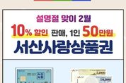 [ 한국미디어뉴스 이원영 기자 ] 충남 서산시는 2026년 2월 설 명절을 맞아 지역 경제 활성화를 위해 서산사랑상품권을 150억 원 규모로 확대 발행한다고 밝혔다. 시는 2월 한시적으로 서산사랑상품권 1인당 구매 한도액을 기존 40만 원에서 50만 원으로 상향하고, 할인율은 기존과 동일한 10%를 적용한다. 모바일(카드) 상품권은 오는 2월 1일 오전 6시부터 ‘지역사랑상품권 chak’ 앱을 통해 구매할 수 있다. 지류 상품권은 2월 2일 농축협, 신협, 수협, 새마을금고, 우체국, 하나은행 등 판매대행점 58개소 개점 시간부터 구매할 수 있다. 구입한 상품권은 관내 가맹점 7,575개소에서 사용할 수 있으며, 자세한 사항은 서산시 누리집에서 확인할 수 있다. 이완섭 서산시장은 “이번 서산사랑상품권의 확대 발행이 설 명절을 맞은 시민의 가계 부담을 덜고, 지역 내 소비 촉진을 통해 소상공인 매출 증대와 골목상권 활성화로 이어지길 바란다”라고 말했다.