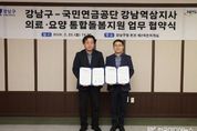 [ 한국미디어뉴스 이보영 기자 ] 꿈이 모이는 도시, 미래를 그리는 강남구가 2월 23일 구청에서 국민연금공단 강남역삼지사와 ‘의료·요양 통합돌봄사업의 원활한 추진을 위한 업무협약(MOU)’을 체결했다. 이번 협약은 3월 27일 '의료·요양 등 지역 돌봄의 통합지원에 관한 법률' 전면 시행을 앞두고 지원체계를 강화하기 위해 마련됐다. 법 시행에 따라 통합돌봄 대상이 65세 이상 구민뿐 아니라 65세 미만 심한 장애인(지체, 뇌병변)까지 확대된다. 구는 65세 미만 심한 장애인(지체, 뇌병변)이 900여명에 이르는 만큼 대상자 발굴부터 조사, 서비스 연계까지 촘촘한 협력이 필요하다고 보고 있다. 국민연금공단 강남역삼지사는 장애인 통합돌봄 과정에서 통합지원 종합판정조사 등 핵심 현장 업무를 수행하는 전문기관이다. 통합돌봄은 대상자의 욕구와 돌봄 필요도를 정확히 조사·판정하는 과정이 서비스 연계의 출발점인 만큼, 구는 전문성과 조사 역량을 갖춘 국민연금공단과 협력해 사업의 실행력을 높이고 안정적으로 정착시킬 계획이다. 양 기관은 협약을 통해 ▲통합돌봄 대상자 발굴 및 지원체계 구축 ▲통합지원조사표에 대한 종합판정조