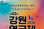 [ 한국미디어뉴스 이원영 기자 ] 강원특별자치도 연극인들의 최대 축제이자 예술적 기량을 겨루는 ‘제43회 강원연극제’가 오는 22일부터 31일까지 10일간 원주에서 화려한 막을 올린다. 이번 연극제는 대한민국 최고의 연극 무대인 ‘제44회 대한민국연극제 in 부산’에 강원 대표로 참가할 극단을 선발하는 예선 대회를 겸하고 있어 더욱 치열하고 수준 높은 경연이 예상된다. 마지막 날인 31일 오후 9시에 열리는 시상식에서 단체상 ‘대상’을 거머쥐는 팀이 부산행 티켓의 주인공이 된다. (사)한국연극협회 강원도지회와 원주지부가 주관·주최하는 이번 행사에는 원주, 춘천, 속초, 강릉, 삼척, 태백, 동해 등 도내를 대표하는 10개 극단이 참여해 매일 저녁 7시 30분, 각기 다른 매력의 무대를 선보인다. 첫날인 22일 오후 2시에는 치악예술관 세미나실에서 ‘강원연극 60년의 의미와 전망’을 주제로 한 ‘강원연극발전포럼’이 개최돼 지난 60년의 역사를 되짚어보고 향후 강원 연극의 비전을 모색한다. 이어 오후 6시 치악예술관 로비에서 개막식이 진행되며, 오후 7시 30분에는 원주를 대표하는 극단 ‘씨어터컴퍼니