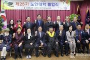 [ 한국미디어뉴스 이보영 기자 ] 지난 11월 13일, 대한노인회 수원시장안구지회 부설 노인대학 제25기 졸업식이 장안구지회 3층 대회의실에서 열렸다. 이번 행사는 (사)대한노인회 수원시장안구지회 주관으로 제25기 졸업생 58명과 지회 임원 20여 명을 포함해 총 80여 명이 참석했으며, 졸업장 수여 및 모범졸업생 시상 등의 식순으로 진행됐다. 수원시 장안구지회 노인대학은 어르신들의 평생학습과 사회참여 확대를 위해 다양한 교양 및 여가 프로그램을 운영하고 있으며, 올 한 해에도 지역 어르신들의 활발한 참여로 큰 호응을 얻었다. 이일희 장안구청장은 이날 행사에 참석해 졸업생들을 격려하며 “노인대학을 통해 배우는 즐거움을 이어오신 졸업생 여러분께 진심으로 축하와 존경을 전한다”며 “앞으로도 어르신들의 지혜와 열정이 지역사회의 큰 힘이 되길 바란다”고 전했다.