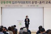 [ 한국미디어뉴스 이보영 기자 ] 서울 은평구는 지난달 27일 공동주택 입주자대표회의 동별 대표자를 대상으로 ‘2026 공동주택 입주자대표회의 운영·윤리교육’을 실시했다고 밝혔다. 공동주택 입주자대표회의 운영·윤리교육은 '공동주택관리법'에 따라 이수해야 하는 법정 의무교육으로, 입주자대표회의 구성원 등 176명이 참석해 공동주택 관리 관련 법령과 실무 내용을 중심으로 진행됐다. 이번 교육에는 하원선 대한주택관리사협회장과 이동현 법무법인 산하 부수석 변호사가 강사로 참여해 공동주택 관련 법령과 판례 해석, 빈발 민원 사례, 장기수선충당금 운영 등 현장에서 바로 활용할 수 있는 실무 중심 내용으로 진행됐다. 김미경 은평구청장은 “공동주택 관리에서 입주자대표회의의 역할이 점점 중요해지고 있다”며 “이번 교육이 공동주택 관리 역량을 높이고, 더 나은 주거환경을 만드는 데 도움이 되길 바란다”고 말했다.