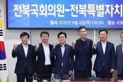 [ 한국미디어뉴스 이보영 기자 ] 전북특별자치도가 지역 국회의원과 함께 2026년 국가예산 확보와 새만금 사업 등 도정 현안 해결 방안을 모색하는 자리를 가졌다. 전북자치도는 4일 국회의원회관에서 김관영 도지사와 더불어민주당 이원택 전북특별자치도당위원장을 비롯한 지역 국회의원들이 참석한 가운데 조찬 간담회를 개최했다. 이 자리에서는 ▲2026년 국가예산 확보 현황 ▲국정과제 반영 후속 대응 ▲새만금 글로벌 첨담전략산업기지 구축 ▲제2중앙경찰학교 유치 ▲농촌진흥청 식품자원개발부 전북 완전 이전 ▲공공의대․전북특별법․가정법원 등 주요 현안 법안을 집중 검토했다. 국가예산 관련해서는 정부안 반영 상황을 토대로 국회 심의 단계에서 과소‧미반영 사업의 증액을 추진하고, 추가 예산을 확보하기로 했다. 또한, 전북의 핵심사업들이 국정과제에 연계된 성과를 실질적인 지역발전 동력으로 전환하는 후속 대응방안을 논의했다. 새만금을 글로벌 첨단산업의 중심지로 육성하기 위한 바이오, 방산 등 첨단전략산업을 실증·육성할 수 있는 국가 테스트베드 조성 전략도 검토했다. 아울러 현 정부의 역점 시책인 균형성장 달