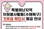 [ 한국미디어뉴스 이원영 기자 ] 홍성군자원봉사센터는 지난해 군에 기록적인 폭우가 내리며 특별재난지역으로 선포됨에 따라, 수해복구 현장에서 자원봉사활동에 참여한 자원봉사자를 대상으로 ‘특별재난지역 자원봉사용역 등에 대한 기부금 확인서’를 발급한다고 밝혔다. 이번 기부금 확인서는 특별재난지역 수해복구에 참여한 자원봉사자의 봉사활동을 사회적으로 인정하고, 연말정산 및 종합소득세 신고 시 소득공제 혜택을 받을 수 있도록 지원하기 위한 것이다. 발급 대상은 2025년 홍성군 수해복구 자원봉사활동에 참여하고, 1365자원봉사포털에 수해복구 관련 봉사시간이 입력된 자원봉사자이며, 신청은 내달 13일까지이다. 신청을 희망하는 자원봉사자는 홍성군자원봉사센터 공지사항을 참고하여 기부금 확인서 서식을 내려받아 파란색 표시된 항목을 작성한 후, 기관 이메일(cnvc14@v1365.or.kr)로 제출하면 되고, 방문 접수를 희망할 시 센터로 직접 방문하거나, 가까운 읍·면행정복지센터에 제출하면 된다. 발급된 기부금 확인서는 연말정산 시 소득공제 항목에 기재하여 증빙자료로 제출하거나, 종합소득세 신고 시 활용할 수 있다