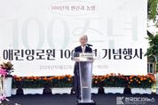 [ 한국미디어뉴스 이원영 기자 ] 김제시는 용지면 소재 애린양로원(원장 한종욱)이 개원 100주년을 맞아 ‘100년의 헌신과 동행’이라는 주제로 22일 기념행사를 개최했다고 밝혔다. 이날 행사는 사회복지 관계자, 지역주민, 후원자 및 자원봉사자 등 약 300여 명이 참석한 가운데 애린양로원 야외공연장에서 진행됐다. 식전공연, 개회선언에 이어 사회복지법인 애린원 한규택 대표이사의 기념사를 시작으로 각계 인사의 축사가 이어졌다. 특히 애린양로원의 어르신 복지향상과 기관 발전에 기여한 단체 및 직원 등을 대상으로 전북특별자치도지사 표창, 김제시장 표창 등 총 8개의 수상이 이뤄져 기쁨의 영광을 누렸다. 한종욱 원장은 “오늘의 영광은 지난 100년간 함께해주신 모든분들의 헌신 덕분”이라며 “앞으로도 어르신들의 품격 있는 삶과 행복을 위해 한결같은 마음으로 노력하겠다”고 밝혔다. 정성주 김제시장은 “김제의 자랑스러운 애린양로원이 창립 100주년을 맞이하게 된 것을 진심으로 축하드린다.”며, “앞으로의 100년도 지역사회와 함께 숨 쉬며, 든든한 복지의 중심으로 우뚝 서기를 기대한다.”고 전했다.