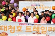 [ 한국미디어뉴스 이원영 기자 ] 대전 동구는 22일 대청호 자연수변공원 일원에서 진행된 ‘2025 동구동런’의 특별편 ‘대청호 트레일러닝’이 성황리에 마무리됐다고 밝혔다. 이날 행사에는 박희조 동구청장을 비롯해 우송대학교·대전보건대학교 관계자 등 100여 명이 참여했으며, 참가자들은 전문 코치와 함께 사전 스트레칭과 워밍업을 마친 뒤 본격적인 러닝 코스에 나섰다. 특히, 대청호 자연수변공원을 출발해 가래울마을·상추마을·대청호자연생태관 등을 경유하는 3.3km 순환 코스를 달리며, 깊어가는 가을 대청호 풍경 속에서 자연을 즐기는 특별한 시간을 가졌다. 러닝 종료 후에는 남녀 상위 3명에 대한 시상과 레크리에이션 프로그램이 이어져 현장의 즐거움을 더했으며, 동부경찰서와 동부소방서, 해병대전우회가 교통 통제와 현장 관리를 지원하며 안전한 행사 진행을 뒷받침했다. 박희조 동구청장은 “동구동런은 누구나 참여해 올바른 러닝 주법을 익히고 건강을 챙길 수 있어 큰 호응을 얻고 있다”며 “앞으로도 내실 있는 프로그램을 통해 ‘건강 동구’를 실현하는 데 최선을 다하겠다”고 말했다. 한편, ‘동구동런