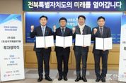 [ 한국미디어뉴스 이원영 기자 ] 최근 세계적으로 각광 받는 AI(인공지능) 분야의 전문기업과 에너지 솔루션 기업이 전주에 둥지를 틀기로 했다. 전주시와 전북특별자치도, 전북연구개발특구는 16일 전북특별자치도청에서 탄소국가산단과 전북테크비즈센터 입주를 희망하는 (유)한국기계설비기술(대표 하정성)과 ㈜모레(대표 조강원) 등 2개 기업과 총 356억 원 규모의 투자협약을 체결했다. 이날 협약식에는 우범기 전주시장과 김관영 전북특별자치도지사, 유진혁 전북연구개발특구 본부장, 하정성 (유)한국기계설비기술 대표, 조강원 (주)모레 대표 등이 참석했다. 투자기업 중 (유)한국기계설비기술은 광주광역시에 소재한 스마트 설비제어 및 에너지 효율 솔루션 전문기업으로, 전주탄소국가산단에 150억 원을 투자해 제조시설을 신축하고, 총 40명 규모의 신규 일자리를 창출키로 약속했다. 시는 에너지 효율 솔루션 전문기업이 전주에 둥지를 틀면, 에너지자립 추진을 위해 ‘스마트그린 국가시범 산업단지’로 지정된 탄소국가산단과의 시너지 효과를 거둘 수 있을 것으로 기대하고 있다. 또한 투자기업 중 서울특별시에 소재한