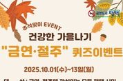 [ 한국미디어뉴스 이보영 기자 ] 평택시 송탄보건소에서 오는 10월 1일부터 13일까지 시민 누구나 참여할 수 있는 ‘건강한 가을나기 금연·절주 퀴즈 이벤트’를 진행한다. 이번 퀴즈 이벤트는 정보무늬(QR코드)를 활용 간편하게 참여할 수 있으며 금연·절주의 필요성과 건강관리 정보를 흥미로운 퀴즈 형식으로 접할 수 있도록 기획됐다. 퀴즈를 완료한 참여자 중 정답자 100명을 추첨해 금연 홍보물(보조배터리)을 증정하며 당첨자는 10월 15일 개별 문자로 안내된다. 상품은 10월 16일부터 22일까지 송탄보건소 1층 헬스케어상담센터 내 금연클리닉에서 수령할 수 있다. 송탄보건소 관계자는 “모든 시민이 금연과 절주의 필요성을 이해하고 건강한 생활을 실천하는 계기가 되길 바란다”라고 전했다.