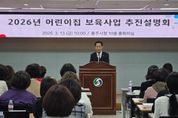 [ 한국미디어뉴스 이원영 기자 ] 충주시는 13일 충주시청 중회의실에서 관내 어린이집 원장을 대상으로 ‘2026년 보육사업 추진 설명회’를 개최했다고 밝혔다. 설명회에서는 올해 보육사업 주요 변경 사항과 어린이집 지도·점검 사례를 공유하고 신규 사업을 안내하며 어린이집의 참여와 협조를 요청했다. 또한 어린이집 운영 과정에서 겪는 애로사항과 현장의 다양한 의견을 청취하는 시간을 갖고, 적극적인 소통을 이어갔다. 이와 함께 충주시육아종합지원센터에서 진행하는 다양한 보육 지원 프로그램도 소개됐다. 센터는 보육교직원을 위한 전문 교육과 상담, 현장 지원 프로그램, 각종 행사뿐만 아니라 부모를 위한 올바른 양육 교육과 가족 참여 프로그램 등도 제공해, 보육 전반에 걸친 지원과 현장 맞춤형 서비스를 강화하고 있다. 시 관계자는 “보육 현장에서 아이들을 위해 애쓰고 계신 어린이집 교직원 여러분께 감사드린다”며 “아이들이 안전하고 행복하게 성장할 수 있는 보육환경 조성을 위해 시에서도 지속적으로 노력하겠다”고 말했다.