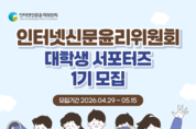[ 한국미디어뉴스 이원영 기자 ] 인터넷신문윤리위원회(위원장 이재진, 이하 인신윤위)는 언론윤리 확산과 미래 언론인 양성을 위해 「인신윤위 대학생 서포터즈 1기」를 모집한다고 밝혔다. 지원은 29일 오늘부터 5월 15일까지 구글폼을 통해 접수하며, 최종 합격자는 5월 22일 개별 안내할 예정이다. 인신윤위는 지난해 대학생 서포터즈를 시범사업으로 운영하며 정책포럼 현장 취재 및 콘텐츠 확산 활동을 진행한 바 있다. 당시 서포터즈는 국회에서 열린 「인터넷신문 윤리정책포럼」에 참여해 기조발제 및 토론 내용을 직접 취재하고, 이를 SNS와 대학언론 등 다양한 플랫폼을 통해 공유했다. 이러한 시범사업 결과를 바탕으로 인신윤위는 대학생 서포터즈를 정규 프로그램으로 전환하고, 이번 1기를 공식적으로 처음 운영한다. 이를 통해 청년 참여 기반의 자율규제 확산 체계를 본격적으로 구축해 나갈 계획이다. 이번에 선발되는 서포터즈는 국회 정책포럼을 비롯해 인신윤위 및 한국언론진흥재단, 한국저작권보호원, 언론중재위원회 등 관련 기관과 연계된 세미나·교육 현장에 참여하여 취재 활동을 수행하게 된다. 또한 기사, 블로그, SNS 콘텐츠 등 다양한 형태의 결과물을 제작하고 이를 통해 정