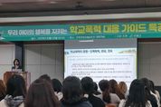 [ 한국미디어뉴스 이보영 기자 ] 서울 은평구는 지난달 29일 은평문화예술회관 대회의실에서 학부모, 지역 주민 약 100명이 참석한 가운데 ‘우리 아이의 행복을 지키는 학교폭력 예방 및 대응 학부모 특강’을 개최했다고 밝혔다. 이번 특강은 ▲학교폭력 대응 가이드 영상 시청 ▲변호사가 들려주는 ‘엄마‧아빠가 꼭 알아야 할 학교폭력’ ▲서부경찰서의 학교폭력 지원프로그램 ▲서부교육지원청의 학교폭력 사례 및 지원프로그램으로 진행됐고 두 시간의 긴 강의에도 학부모들은 자리를 떠나지 않고 강사에게 질문하는 등 높은 관심을 보였다. 특히 국내 1호 학교폭력 전문 변호사와 서울서부경찰서 학교전담 경찰관(SPO), 서부교육지원청 장학사 등 각 분야의 전문가들이 강사로 참여해 학교폭력에 대한 학부모들의 궁금증을 풀어주고, 실제 학교폭력 사례에 바탕으로 구체적인 대처 방안을 제시했다. 특강에 참여한 한 학부모는 “학교폭력 사례를 통해 예방과 대응 방법을 알게 되어 막연한 불안감을 해소할 수 있는 뜻깊은 시간이었다”며 “앞으로도 이런 자리를 자주 마련해줬으면 좋겠다”고 소감을 밝혔다. 김미경 은평구청장은 "학생과 학