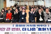 [ 한국미디어뉴스 김서안 기자 ] 의정부시 호원1동주민센터는 1월 14일 주민센터 3층 다목적실에서 주민 100여 명이 참석한 가운데 호원1동 주요업무보고회를 개최했다. 이번 보고회는 ‘호원의 가치를 깨우다 – 작지만 큰 변화, 더 나은 호원1동의 미래’를 주제로, 2025년 추진 결과를 공유하고 2026년 중점 추진 사업을 주민과 함께 논의하기 위해 마련했다. 행사는 ▲새해 소망 공유 및 덕담 나누기 ▲표창장 수여 ▲2026년 주요업무 보고 ▲주민과의 대화 순으로 진행됐다. 주민들이 직접 작성한 ‘소망카드’를 내빈이 읽고 덕담을 전하는 행사는 현장의 공감을 이끌어내며 큰 호응을 얻었다. 호원1동은 2025년 한 해 동안 ▲망월로 걷고 싶은 거리 조성 ▲회룡초 통학로 환경개선 ▲호원천 생태하천 복원 ▲중랑천 소망존 환경개선 ▲호원 벚꽃 페스타 개최 등 생활‧안전, 생태‧환경, 문화‧관광 분야에서 여러 사업을 추진했다. 이를 토대로 2026년에는 ▲중랑천 상설무대 계단 조성 ▲중랑천변 금계국 군락지 조성 ▲호원천 다리 하부 조명 설치 ▲다락원 녹색쉼터 조성 ▲시립 백영수미술관 건립을 위한 준비 등
