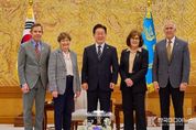 [ 한국미디어뉴스 이원영 기자 ] 이재명 대통령은 4월 2일 오후 청와대에서 진 섀힌(Jeanne Shaheen) 상원 외교위원회 간사 등 공화·민주 양당 의원으로 구성된 미국 상원의원 대표단을 접견했다. 이 대통령과 미 대표단은 한미동맹 및 한반도 문제를 비롯해 중동 전쟁의 안보적·경제적 파장과 대응 방안에 대해 심도 있는 의견을 교환하고, 향후 경제적 여파 대응 과정에서 한미가 긴밀히 소통해 나가는 것이 중요하다는 점에 뜻을 같이 했다. 이 대통령은 지난 70여 년간 발전을 거듭한 한미동맹이 안보와 경제를 넘어 첨단기술과 전략산업 등을 아우르는 ‘미래형 포괄적 전략동맹’으로 발전한 점을 높이 평가했다. 또한 올해는 대미 투자 패키지를 포함해, 원자력의 평화적 이용, 핵추진잠수함, 조선 등 지난해 양국 정상 간 합의한 핵심적인 분야에서 구체적인 협력을 진전시켜 나갈 수 있도록 미국 상원이 적극적으로 지지해줄 것을 당부했다. 미 대표단도 최근 중동전쟁 등 국제정세가 불안정한 상황에서도 한미동맹에 대한 지지와 미국의 굳건한 한반도 안보 공약에는 변함이 없을 것임을 재확인했다. 이 대통령이 한반도 비핵화와 평화·안정을 위한