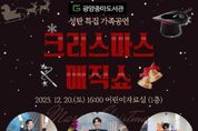 [ 한국미디어뉴스 이종철 기자 ] 광양중마도서관이 오는 12월 20일 오후 4시 어린이실에서 성탄 특집 공연 ‘크리스마스 매직쇼’를 개최한다. 공연을 맡은 ‘펀앤쇼’는 김정호 마술사가 이끄는 어린이 전문 공연팀으로, 지난 10여 년간 어린이대공원, 청주문화제, 삼성 어린이대축제 버블쇼 등 다양한 무대에서 5,000회 이상 공연하며 웃음과 감동을 전해왔다. 이번 공연에서는 크리스마스 분위기를 담은 테마 마술와 풍선을 활용한 색다른 매직 퍼포먼스가 펼쳐진다. 특히 공연팀이 직접 기획한 이야기형 구성으로 아이들의 흥미와 몰입도를 높이고, 어린이가 무대에 함께 참여하는 순서도 마련해 가족 모두에게 따뜻한 성탄의 추억을 선사할 예정이다. 관람 신청은 12월 8일 오전 10시부터 광양시립도서관 누리집에서 진행된다. 선착순 80명까지 신청할 수 있으며, 관람료는 무료다. 자세한 사항은 시립도서관 누리집을 확인하거나 중마도서관으로 문의하면 된다. 김현숙 도서관과장은 “아이들이 이번 공연을 통해 새로운 상상과 창의의 세계를 경험하고 마술의 원리를 탐구하는 재미를 느끼길 기대한다”며 “도서