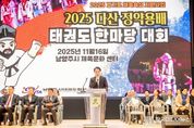 [ 한국미디어뉴스 김서안 기자 ] 남양주시의회는 16일 남양주체육문화센터 실내체육관에서 열린 ‘다산 정약용배 태권도 한마당대회’에 참석해 참가선수들을 격려했다. 남양주시체육회가 주최하고 남양주시태권도협회가 주관한 이번 대회는 시민 건강 증진과 생활체육 활성화를 위해 마련됐으며, 1500여명의 참가선수들이 품새, 겨루기, 격파, 태권체조, 스피드발차기 등 다양한 종목을 통해 그간 준비한 기량을 마음껏 펼치며 실력을 겨뤘다. 이날 개회식은 조성대 남양주시의회 의장을 비롯해 시의원, 주광덕 시장, 국회의원, 도의원, 강신관 남양주시태권도협회장 등 주요 인사들이 참석했으며, △개회선언 △내빈소개 △표창 및 감사패 수여 △대회사 △환영사 및 축사 △태권도 시범공연 △기념촬영 순으로 진행됐다. 조성대 의장은 축사에서 “실학의 고장 남양주에서 정약용 선생의 배움과 실천 정신이 깃든 이름으로 열린 이번 대회는 그 의미가 더욱 특별하며, 태권도야말로 예의와 질서, 존중의 정신을 배우는 훌륭한 교육”이라고 강조했다. 이어 “상대에 대한 배려와 정정당당한 승부뿐만 아니라 진정한 승리는 이기는 것보다 자신을 이겨내는데