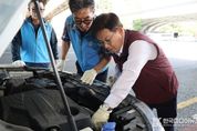 [ 한국미디어뉴스 이보영 기자 ] 박강수 마포구청장은 9월 21일 오전, 월드컵경기장 남문 맞은편에서 열린 자동차 무상점검 현장을 방문했다. 이번 무상 점검은 마포구의 후원 아래 서울시자동차전문정비사업조합 마포구지회가 주관해 10시부터 16시까지 진행됐으며, 추석을 앞두고 구민들의 안전한 귀성길을 지원하기 위해 마련됐다. 전문 자격증과 숙련된 기술을 갖춘 정비원 30명이 참여해 차량의 엔진 상태, 점화계통, 벨트류, 변속기, 타이어 공기압, 브레이크 패드 등 장거리 주행에 필수적인 요소들을 꼼꼼하게 점검했다. 또한 노후되거나 고장 난 전구, 와이퍼와 같은 소모품은 현장에서 즉시 무상으로 교체해 구민들로부터 큰 호응을 받았다. 박강수 구청장은 “추석 이동이 많은 시기에 구민들이 안전하게 이동하실 수 있도록 최선을 다하겠다”며 “앞으로도 구민들의 편안하고 안전한 일상을 위해 다양한 지원을 아끼지 않겠다”라고 말했다.