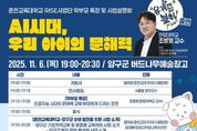 [ 한국미디어뉴스 이원영 기자 ] 양구군은 춘천교육대학교 및 강원대학교와 협력해 2025년부터 2029년까지(5년간) 강원특별자치도 RISE(지역혁신중심 대학지원체계)사업을 추진하기로 했다. 연간 약 13억 원의 사업비를 확보한 양구군은 2개 대학(춘천교대, 강원대)과 양구 맞춤형 교육 케어 및 백자 문화산업 스케일업과 평생교육 생태계 구축 등으로, 교육‧문화‧산업이 융합된 지역혁신 생태계를 실현할 계획이다. 그 첫 번째 단계로, 양구군은 춘천교육대학교 RISE사업단과 오는 6일 오후 7시에 버드나무 예술창고 공연장에서 학부모 등 150여 명을 대상으로 학부모 특강 및 사업설명회를 개최한다. 이번 행사는 인공지능 시대에 요구되는 핵심 역량 중 하나인 문해력 교육의 방향성을 공유하고, 춘천교대와 양구군의 교육·문화 분야 상생 발전 사례를 안내하기 위해 마련됐다. 1부에서는 국내 문해력 연구 권위자인 한양대학교 조병영 교수의 ‘인공지능 시대의 문해력 교육: 부모에게 드리는 조언’이란 주제로 급격한 기술 변화 속에서 학생들의 학습 이해도 및 정보 활용 능력을 높이는 방법과, 가정에서 실천할 수 있는 문해력 향상 전