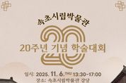[ 한국미디어뉴스 이원영 기자 ] 속초시가 11월을 맞아 예술과 학술, 반려동물이 함께하는 다채로운 문화행사를 연이어 개최한다. 오는 6일부터 9일까지 시립박물관, 문화예술회관, 엑스포타워 광장에서 속초의 가을을 물들이는 문화축제가 이어진다. 6일 속초시립박물관은 개관 20주년을 기념해 학술대회를 연다. 이번 학술대회는 박물관이 20년간 축적해 온 소장자료의 학술 가치를 재조명하고 향후 전시·교육·연구의 방향을 모색하기 위한 자리다. 문서, 호구, 전적, 전통과학, 가전(家傳) 등 주요 자료군을 주제로 △율곡국학진흥원 정우진 연구위원·오일훈 연구원·김충원 연구원 △한국학중앙연구원 허원영 연구원·이태희 연구원의 발표와 지정토론이 이어진다. 7일 저녁 7시에는 속초시립풍물단이 제18회 정기연주회 ‘스무 해를 담다 “풍악”’을 속초문화예술회관 대공연장에서 선보인다. 전통 장단을 기반으로 한 창작 타악 공연으로, 모듬북·대북·버나놀이·소고놀이 등이 현대적 조명 연출과 결합해 전통음악의 현대적 감각이라는 새로운 면모를 선보인다. 9일 오전 10시에는 엑스포타워 광장에서