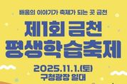 [ 한국미디어뉴스 이보영 기자 ] 금천구는 11월 1일 오전10시 금천구청 광장 일대에서 ‘제1회 금천평생학습축제’를 개최한다고 밝혔다. 축제는 ‘배움의 이야기가 축제가 되는 곳, 금천’을 주제로, 구 개청 30주년과 평생학습도시 지정 12주년을 기념해 마련됐다. 학습자, 동아리, 기관과 단체가 함께 어우러져 그동안의 학습 성과를 나누고 주민이 즐길 수 있는 학습문화 축제다. 축제 공간은 금천구 도시브랜드인 ‘행복도시, 학습도시, 문화도시, 상생도시’ 4개 구역으로 나뉘어, 공연·체험·전시·홍보 등 51개 프로그램이 운영된다. 관람객들은 각 도시를 여행하듯 공간을 이동하며 다양한 프로그램을 체험하고, 스탬프를 모으면 학습 이벤트 참여 기회를 얻을 수 있다. 주 무대인 썬큰광장에서는 시흥3동 주민자치 프로그램 ‘신바람 노래교실’의 축하공연을 시작으로, 금천시민대학과 평생학습 동아리들의 공연이 이어진다. 오후 1시 개막식에는 금천시민대학 ‘바른 자세와 모델워킹’ 수료생들의 특별 공연과 브라스 밴드 무대가 펼쳐져 현장을 더욱 빛낼 예정이다. 구청 광장에서는 인공지능(AI) 면접 체험, 디지털 그림그리기