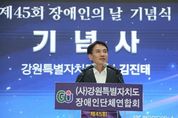 [ 한국미디어뉴스 이원영 기자 ] 강원특별자치도는 9월 3일 삼척실내체육관에서 장애인과 가족, 자원봉사자 등 1,000여 명이 참석한 가운데 '제45회 장애인의 날' 기념식을 개최했다. 이번 행사는 강원특별자치도와 삼척시가 주최하고, 강원특별자치도장애인단체연합회와 삼척시장애인단체연합회가 주관했다. 기념식은 축하공연을 시작으로 제26회 장애인복지대상 시상, 강원특별자치도지사 표창 등이 이어지며 장애인 복지와 권익 증진에 기여한 개인과 단체의 노고를 격려했다. 축하공연은 삼척시 장애인들로 구성된 엔젤색소폰팀의 무대, 2025년 제38회 프랑스 베지에 국제 성악 콩쿠르 2위를 차지한 정주람 성악가의 공연, 지적발달장애인들로 이루어진 ‘태양난타’의 공연으로 다채롭게 꾸며졌다. 제26회 장애인복지대상은 △ 자랑스런 장애인 부문에 (사)한국문인협회 삼척지부장 강동수 씨 △ 장한 장애인 가족 부문에 강원특별자치도지적발달장애인복지협회 양양군지부장 이인옥 씨 △ 고마운 장애인 봉사 부문에 한국산재장애인협회 강원도협회가 각각 수상했다. '장애인의 날'은 매년 4월 20일로, 1981년부터 정부 기념행사