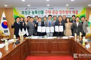 [ 한국미디어뉴스 이종철 기자 ] 보성군은 16일 보성군청에서 보성군, 보성농협, 한국외식업중앙회가 보성군 농특산물 판로 확대와 판매 활성화를 위한 업무협약(MOU)를 체결했다고 밝혔다. 이번 협약은 보성군과 한국외식업중앙회가 보성농협과 함께 지역 농가의 농특산물 판로를 확대하고 판매를 활성화하기 위해 마련됐다. 협약식에는 김철우 보성군수, 문병완 보성농협조합장, 김우석 한국외식업중앙회 회장을 비롯해 송해경 NH농협은행보성군지부장, 이문균 보성농협쌀조합공동사업법인 대표 등 관계자들이 참석해 실질적인 협력 추진 의지를 다졌다. 주요 내용은 ▲보성군의 농특산물 구매‧공급 활성화를 위한 정책 협력, ▲보성농협의 고품질 보성 쌀 및 녹돈의 연간 안정적 공급, ▲한국외식업중앙회 회원업소를 대상으로 보성군 농특산물 우선 구매 홍보 등이다. 이날 협약을 통해 외식업계와의 공급망을 기반으로 보성 농특산물의 안정적인 소비처를 확보하고, 지역 농가의 판로 확대와 농가 소득 증대에도 이바지할 것으로 기대된다. 한국외식업중앙회 김우석 회장은 “이번 협약으로 보성군의 고품질 농특산물이 외식업계를 통해