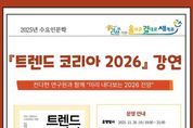 [ 한국미디어뉴스 이원영 기자 ] 인천광역시교육청서구도서관은 11월 26일 오후 7시부터 9시까지 『트렌드 코리아 2026』의 공동 저자 전다현 연구원을 초청해 ‘미리 내다보는 2026 전망’ 강연을 진행한다. 이번 강연은 서구도서관의 대표 인문학 프로그램인 '수요인문학'의 일환으로, 함께읽기 프로그램과 연계해 온라인(ZOOM)으로 운영된다. 서울대 소비트렌드분석센터 전다현 연구원이 ‘HORSE POWER’를 핵심 키워드로 인공지능(AI) 대전환 시대의 변화와 대응 전략을 이야기할 예정이다. 참가 신청은 11월 12일 오전 10시부터 서구도서관 누리집에서 가능하며, 자세한 사항은 독서문화과로 문의하면 된다.