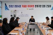 [ 한국미디어뉴스 이종철 기자 ] 장흥소방서는 전통시장 화재 위험요인을 사전에 차단하고 안전관리 수준을 높이기 위해 1월 21일 오전 11시 천관산관광시장 상인회 사무실에서 화재예방을 위한 관계기관 합동 간담회를 개최했다. 장흥군 관내에는 정남진토요시장을 비롯해 총 6개의 전통시장이 있으며, 191개 점포가 운영 중이다. 이처럼 다수의 점포가 밀집된 전통시장은 화재 발생 시 피해가 확대될 우려가 크지만, 장흥소방서 통계자료에 따르면 최근 5년간(2020년 2월~2025년 2월) 장흥군 전통시장 화재 발생 건수는 단 한 건도 발생하지 않아, 지속적인 예방 활동의 성과가 나타났다. 이번 간담회에는 장흥소방서, 관산읍사무소, 천관산관광시장 상인회, 자율소방대 등 관계기관이 참여해 전통시장의 구조적 특성과 겨울철 화재 취약요인을 공유하고, 현장 중심의 실효성 있는 화재 예방대책을 논의했다. 특히 이날 간담회에서는 시장 관계자를 대상으로 화재안전컨설팅도 함께 진행됐다. 컨설팅 주요 내용은 ▲겨울철 난방기기 및 전기설비 사용 시 화재 예방수칙 ▲소화기 사용법 등 화재 초기 대응요령 ▲피난·대피 동선 장애물 제거 및 안전