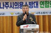 [ 한국미디어뉴스 이종철 기자 ] 전라남도의회 안전건설소방위원회 최명수 의원(더불어민주당·나주2)은 1월 16일 ‘나주시 의용소방대 연합회장 이·취임식’에 참석해 신임 회장단의 출범을 축하하고, 그동안 지역 안전을 위해 헌신해 온 의용소방대원들의 노고에 깊은 감사를 전했다. 이날 행사에는 신향식 나주소방서장을 비롯한 소방공무원과 각 읍·면 의용소방대장, 이재남 나주시의회 의장, 이재태 도의원, 나주시 의원 등 100여 명이 참석해 자리를 빛냈다. 이·취임식에서는 김용준 회장과 장숙희 회장이 새롭게 나주시 의용소방대 연합회를 이끌어 갈 회장으로 취임했으며, 두 사람이 누구보다 현장을 잘 알고 대원들의 목소리에 꾸준히 귀 기울여 온 인물인 만큼, 그동안 쌓아온 경험과 신뢰를 바탕으로 나주시 의용소방대를 더욱 단단하고 따뜻한 조직으로 이끌어 갈 것으로 기대된다. 아울러 그동안 연합회를 이끌어 온 나병곤·선금숙 회장에 대해서도, 각종 재난 현장과 화재 예방 활동, 지역 봉사에 앞장서며 나주시 의용소방대의 위상을 높이고 시민의 생명과 재산을 지키는 든든한 버팀목 역할을 해온 점이 높이 평가됐다. 최명수 도