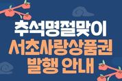 [ 한국미디어뉴스 이보영 기자 ] 서울 서초구는 다가오는 추석을 맞아 주민들의 장바구니 부담을 덜고 지역경제를 활성화하기 위해 서초사랑상품권 할인율을 기존 5%에서 7%로 대폭 확대해 발행한다고 밝혔다. 이번 서초사랑상품권은 9월 16일 오전 10시, 서울페이플러스 앱을 통해 총 100억 원 규모로 발행된다. 1인당 최대 50만 원 한도에서 액면가보다 7% 저렴하게 구매할 수 있다. 특히 이번 추석부터는 네이버페이 머니를 통한 결제도 가능해져 편의성도 한층 높아졌다. 기존 보유 상품권이 있더라도 최대 보유한도인 150만 원을 넘지 않는 범위 내에서 추가 구매가 가능하다. 상품권의 유효기간은 구매일로부터 5년이며, 사용하지 않은 상품권은 언제든 전액 환불할 수 있다. 구매액의 60% 이상을 사용한 경우, 할인분을 제외한 잔액도 환불 가능하다. 구입한 상품권은 서초구 내 음식점, 소규모 마트, 편의점 등 3만여 개 가맹점에서 사용 가능하며, 자세한 사용처는 서울페이플러스 앱 ‘가맹점 찾기’ 메뉴에서 확인할 수 있다. 한편 서초구는 지난 8월, 소비촉진과 골목상권 활성화를 위해 ‘서초 땡겨요상품권’을