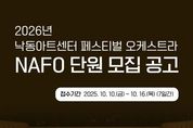 [ 한국미디어뉴스 이원영 기자 ] 부산 강서구는 서부산 최초의 클래식 전문 공연장인 낙동아트센터와 함께할 ‘낙동아트센터 페스티벌 오케스트라(NAFO)’ 단원을 공개 모집한다고 밝혔다. 이번 모집을 통해 강서구는 수준 높은 음악적 역량과 열정을 지닌 연주자들로 오케스트라를 구성해, 향후 낙동아트센터에서 품격 있는 클래식 공연을 시민들에게 선보일 계획이다. NAFO는 내년 1월 낙동아트센터 정식 개관 기념 무대에서 말러 교향곡 제8번, 오페라 아이다, 발레 백조의 호수 등 세계적인 명작을 연주할 예정이다. 이에 앞서 오는 12월 24일, 말러 교향곡 제8번과 베토벤 교향곡 제9번 4악장을 연주하는 프리뷰 콘서트를 개최해, 정식 개관 전부터 웅장한 음악의 울림을 선사하며 낙동아트센터에 대한 시민들의 기대감을 높일 전망이다. 모집 분야는 ▲오케스트라 악장 ▲수석 ▲단원 ▲기획지원단원이며, 만 18세 이상이면 누구나 지원 가능하다. 접수 기간은 10월 10일부터 16일 오후 5시까지로, 강서구청 홈페이지에서 참여신청서를 내려받아 전자메일로 제출하면 된다. 전형은 기획지원단원의 경우 면접, 오케스트라 단원의