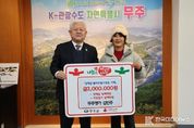 [ 한국미디어뉴스 이종철 기자 ] 무주군 무주읍에 위치한 한식 전문점 ‘무주명가’의 김민주 사장이 지난 14일 무주군에 이웃돕기 성금 1백만 원, (재)무주군교육발전장학재단에 장학금 1백만 원 등 총 2백만 원을 기탁했다. 김민주 사장은 “주민 여러분 덕분에 장사도 어느새 10년 세월을 넘겼다”라며 “앞으로도 지역과 이웃을 돌아보며 귀한 나눔을 실천할 수 있도록 열심히 살 것”이라고 밝혔다. 무주명가에서는 지난 2019년부터 6백만 원에 달하는 장학금을 기부한 바 있으며, 이외에도 불우이웃 돕기와 학생 교육에 힘쓰며 나눔문화 확산에 앞장서고 있다.