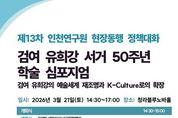 [ 한국미디어뉴스 이원영 기자 ] 인천연구원은 2026년 3월 21일 오후 2시 30분, 청라블루노바홀에서 “검여 유희강의 예술세계 재조명과 K-Culture로의 확장”을 주제로 '제13차 현장동행 정책대화'를 개최한다. 인천연구원이 2026년부터 본격 시행 중인 ‘현장동행 정책대화’의 일환으로 마련된 이번 행사는 검여 유희강 서거 50주년을 기념해 인천서구문화재단과 공동주관으로 개최되며, 그의 예술세계와 정신을 재조명하고 K-Culture로의 확장 가능성을 모색하는 학술 심포지엄으로 진행될 예정이다. 이날 개회식에서는 김성하 인천서구문화재단 대표이사가 개회사를, 강범석 인천광역시 서구청장과 최계운 인천연구원장이 축사를 맡는다. 이어 진행되는 첫 번째 발표에서는 박재복 경동대학교 국제융합학부 교수가 “검여 유희강의 위상 재정립과 예술정신 계승”을, 두 번째 발표에서는 안현정 성균관대학교 박물관 학예실장이 “검여 예술의 현대적 해석과 공공문화·동시대 활용 가능성 확장 논의”를 주제로 발표한다. 종합토론 사회는 전 경기도박물관 관장인 이동국 독립큐레이터가 맡으며, 토론에는 김창수 인하대학교 초빙교수