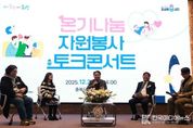 [ 한국미디어뉴스 김풍옥 기자 ] 충청북도는 충청북도종합자원봉사센터와 함께 ‘온기나눔 자원봉사 토크콘서트’를 22일 도청 대회의실에서 참여 신청을 받은 자원봉사자와 도, 시‧군 자원봉사센터 직원 등 100여명이 참석한 가운데 개최했다. 처음으로 개최된 이번 토크콘서트는 객석의 자원봉사자가 4명의 패널과 함께 질의응답식 대화를 이어가는 방식으로, 패널로는 김영환 도지사가 직접 패널로 참여하고, 도 자원봉사센터장, 일반봉사자, 청년봉사자가 참여해 도민의 참여 확대와 지속 가능한 자원봉사 생태계 조성을 위한 ‘충북 자원봉사 활성화’ 주제를 중심으로 패널 토크를 이어나가며 다양한 제안과 의견을 함께 공유했다 이밖에도 청중들을 대상으로 참여형 퀴즈쇼인 ‘유퀴즈 온더 충북’을 진행하여 충북 곳곳의 문화·관광을 알아가는 뜻깊은 시간을 가졌다. 김영환 도지사는 “자원봉사는 일상의 작은 실천이 모여 큰 변화를 만드는 힘”이라며 “현장의 제안을 도정에 적극 반영해 더 많은 도민이 안전하고 즐겁게 봉사에 참여할 수 있는 환경을 만들겠다. 함께 가면 더 멀리 갈 수 있다. 충북의 희망을 여러분과 함께 굳건히 만들어 가겠다”고