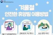 [ 한국미디어뉴스 이원영 기자 ] ■ 겨울철 안전한 휴양림 이용방법 · 외출 전 기상정보를 확인하고 기온변화에 대비한 옷차림하기 · 산불 발생 및 기상 악화 시 해당 휴양림에 사전 문의 후 방문 자제하기 · 눈길, 빙판은 피하고 미끄럼방지 기능이 있는 굽 낮은 신발 신기 · 계단이나 목교 이용 시 난간 잡기, 처마 밑 고드름 조심하기 · 텐트 내 난방기구 사용 시 일산화탄소 경보기를 설치하고, 환기구 확보하기 · 지정된 장소에서 허용된 화구만을 사용하며, 불씨 꺼짐 확인 필수 국립자연휴양림, 겨울에도 안전하고 편안하게 이용하세요!