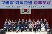 [ 한국미디어뉴스 이원영 기자 ] 대전시교육청은 2월 27일, 대전시교육청 대강당에서 퇴직교원 정부포상 대상자와 가족 등이 참석한 가운데 ‘2026년 2월말 퇴직교원 정부포상 전수식’을 개최했다고 밝혔다. 이번 포상 수상자들은 오랜 세월 교직에 몸담으며 대전교육과 국가 교육 발전에 기여한 공로를 인정받았다. 훈격별 수상자는 황조근정훈장 7명, 홍조근정훈장 29명, 녹조근정훈장 19명, 옥조근정훈장 7명, 근정포장 10명, 대통령표창 3명, 교육부장관 표창 5명 등 총 80명이다. 퇴직교원을 대표해 소회를 밝힌 대전문지중학교 박미혜 교장은 정든 교정을 떠나는 아쉬움과 함께 그동안 뜻을 같이한 동료 교육 가족들에게 깊은 감사의 마음을 전했다. 설동호 대전광역시교육감은 “교육에 대한 사랑과 열정으로 국가와 대전교육 발전을 위해 헌신한 선생님들께 존경과 축하의 마음을 전한다”라며 “대전교육가족은 언제나 선생님들의 노고를 기억하고 앞날을 응원할 것”이라고 밝혔다.