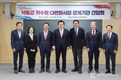 [ 한국미디어뉴스 이원영 기자 ] 부산시는 어제(20일) 오후 4시 경상남도청 도정회의실에서 개최된 '낙동강 취수원 다변화사업 관계기관 간담회'에서 물 문제 해결을 위한 의미있는 논의를 진행했다고 밝혔다. 간담회에는 박형준 부산시장, 박완수 경상남도지사, 박상웅 국회의원, 의령군수, 창녕군수, 기후에너지환경부 물이용정책관, 창녕군 반대대책위원장 등 총 7명이 참석하여 사업 전반과 주민 우려사항을 심도 있게 논의했다. 또한 합천군을 비롯해 수혜 지역인 창원시·양산시·함안시·김해시 부단체장이 배석하는 등 관련 지자체가 모두 함께해 자리를 더욱 뜻깊게 했다. 이번 간담회는 ▲[기후에너지환경부] 낙동강 취수원 다변화사업 추진상황 보고 ▲[부산시] 취수지역 상생협력방안 보고 ▲[토론] 질의응답 및 기관별 입장 공유 순으로 진행됐다. 기후부는 낙동강 취수원 다변화사업 추진상황을 그동안 반대대책위원회가 제시한 주요질의에 대한 응답 형식으로, ▲지점별 취수계획 ▲지하수위 영향범위 ▲지하수위 감소 대책 ▲손실보상 방안 등을 설명했다. 부산시는 ▲부산-창녕 상생발전기금 조성 ▲창녕군 출신 학생 장학금·