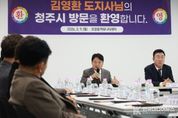 [ 한국미디어뉴스 김풍옥 기자 ] 김영환 충북도지사는 3월 9일 청주시를 방문해 주요 현안사업장을 점검하고, 주민간담회와 도정보고회를 통해 청주시민들과 민생 현안을 공유하는 시간을 가졌다. 먼저 김 지사는 지난해 4월 개소한 복합문화공간인 오창커뮤니티센터를 방문해 주요 시설 운영 현황을 살펴본 뒤, 오창읍 기관·단체장 30여 명과 지역발전 간담회를 갖고 지역 현안과 발전 방향에 대해 폭넓은 의견을 나눴다. 이 자리에서 참석자들은 오창 지역의 정주여건 개선과 생활 인프라 확충, 지역경제 활성화 방안 등 다양한 의견을 제시했으며, 김 지사는 현장에서 제기된 건의사항과 애로사항을 청취하고 실질적인 지원 방안을 함께 모색했다. 김 지사는 이어 단시간 근로를 희망하는 여성·청년에게 공동작업 일자리를 제공하는 ‘일하는기쁨’ 사업 오창 작업장을 찾아 작업 현장을 살펴보고 직접 작업을 지원했고 이후 일감 제공기관 및 작업 참여자들과 함께 사업 운영 과정의 애로사항과 일자리사업의 지속가능한 발전 방안에 대해 의견을 나눴다. 또 김 지사는 청주시 장애인복지관을 방문해 시설 운영 현황과 주요 사업을 점검하고 관계자
