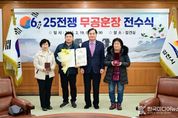 [ 한국미디어뉴스 이보영 기자 ] 김천시는 2월 19일 김천시청 접견실에서 6·25전쟁 중 국가와 나라를 위해 헌신하고 돌아가신 무공수훈자의 유족에게 무공훈장을 전수하는 전수식을 개최했다. 이번 전수식에서는 고(故) 오길환 님과 고(故) 박규독 님, 고(故) 장준상 님, 총 세 분의 유족에게 화랑무공훈장이 전달됐다. 고인들은 6·25전쟁에 참여하여 전쟁 당시 무공훈장 수여가 결정됐으나, 전쟁 중의 혼란으로 교부받지 못해 오늘 유족들이 대리 수여하게 됐다. 유가족들은 이제라도 고인의 희생을 기리고 기념할 수 있는 무공훈장을 수여하게 된 것에 크게 기뻐하며 고마워했다. 배낙호 김천시장은 “지금이라도 무공훈장의 주인을 찾아드리게 되어 기쁘게 생각한다. 무공훈장 수훈은 개인을 넘어 가문에도 매우 자랑스러운 일로 김천시민들에게도 자긍심을 심어주는 계기가 될 것이다.”라고 했다. 한편, 이번 전수식은 6·25전쟁 무공훈장 찾아주기 조사단에서 추진하고 있는 ‘6·25전쟁 무공훈장 찾아주기 사업’의 일환으로 진행됐으며, 조사단에서는 2019년부터 2025년 12월까지 3만 5천여 명의 무공훈장 수훈