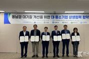 [ 한국미디어뉴스 이원영 기자 ] 경남도는 23일 낙동강유역환경청 대회의실에서 효성중공업(주), 낙동강유역환경청, 김해시, 양산시, 함안군과 함께 『대·중소기업 지역대기질 개선 상생협력 사업 연도별 참여 확약식』을 체결했다고 밝혔다. 『대·중소기업 지역 대기질 개선 상생협력 사업(이하 “상생협력 사업”)』은 국가재정만으로 지원하는 기존의 국고보조사업과 달리 대기업이 중소기업과 상생협력을 통해 출연하는 민간기금(50%)으로 추진하는 사업으로 중소기업의 노후 방지시설 교체 및 IoT 측정기기 부착을 지원한다. 환경부가 2025년 최초로 추진하는 시범사업으로 경남도는 도 소재 대기업들을 상대로 한『찾아가는 환경 세일즈활동』을 통해 상생협력 사업을 적극적으로 홍보하여 효성중공업(주)가 참여 의향을 밝혀 이번 확약식을 체결하게 됐다. 효성중공업(주)는 지속적으로 상생협력사업을 진행해 온 ESG 경영 실천 대기업으로 이번에 동남권 최초로 지역대기질 개선 사업에 참여해 4년간 도내 중소기업을 지원하기로 확약했으며, 이중 효성중공업(주)가 50%를 부담하고, 국비가 20%, 지방비가 20%(도 10%, 시군 10%), 수혜