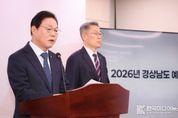 [ 한국미디어뉴스 이원영 기자 ] 경상남도는 13일 오전 도청 프레스센터에서 열린 브리핑을 열고, 2026년도 예산안을 전년 대비 1조 8,118억 원(14.5%) 늘어난 14조 2,845억 원으로 확정했다고 발표했다. 이날 박완수 도지사는 “2026년도 예산안은 재난·재해 등 위기 대응 능력을 강화하고, 도민행복시대 시책을 안정적으로 추진하며, 미래성장 기반을 다지는 데 중점을 뒀다”고 밝혔다. 이어 “현장에서 만난 도민의 다양한 목소리를 반영한 체감형 사업에 예산을 우선 배분했다”며 “14조 원 규모의 예산이 도민의 행복과 지역경제 활력의 마중물이 될 것”이라고 강조했다. 박 지사는 또 “부동산 시장 불안 등으로 자체 세입은 제자리걸음 수준이지만, 정부예산안에 반영된 국비가 11조 원을 돌파하면서 국고보조금이 대폭 증가했다”고 설명했다. 세입예산은 △국고보조금 8조 4,324억 원(59.0%), △지방세 수입 3조 8,050억 원(26.6%), △지방교부세 1조 801억 원(7.6%) 등으로 구성됐으며, 국고보조금이 절반 이상을 차지한다. 경남도는 혁신적 예산편성을 위해 ‘예산편성점검단’을 운