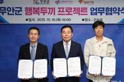 [ 한국미디어뉴스 이종철 기자 ] 전남 무안군은 지난 16일 무안군청 군수실에서 행복얼라이언스 및 행복도시락사회적협동조합과 함께 결식 우려 아동을 위한 '행복두끼 프로젝트' 업무협약을 체결했다. 이날 협약식에는 김산 군수, 조민영 행복얼라이언스 사무국 본부장, 최준 행복도시락사회적협동조합 사무국장이 참석했다. '행복두끼 프로젝트'는 지방정부·기업·사회적기업이 협력해 아동 결식문제를 해결하는 사회공헌 프로그램으로, 관내 결식 우려 아동 20명에게 1년간 매주 1~2회 총 4천 2백만원 상당의 밑반찬 도시락을 제공하여 끼니 해결이 어려운 아이들의 건강한 성장을 돕는 사업이다. 김산 군수는 “행복두끼 도시락은 성장기 아이들에게 큰 희망과 정성이 될 것”이라며 “지역의 취약계층 아동이 소외되지 않도록 다양한 민관 협력사업을 더욱 확대해 나가겠다”고 밝혔다. 아울러, 군은 매년 저소득 취약계층 아동 300명에게 방학 및 학기 중 토·공휴일 아동급식을 실시하고 있으며, 앞으로도 아동의 복지 향상과 건강한 성장 환경 조성을 위해 지속적으로 노력할 계획이다.